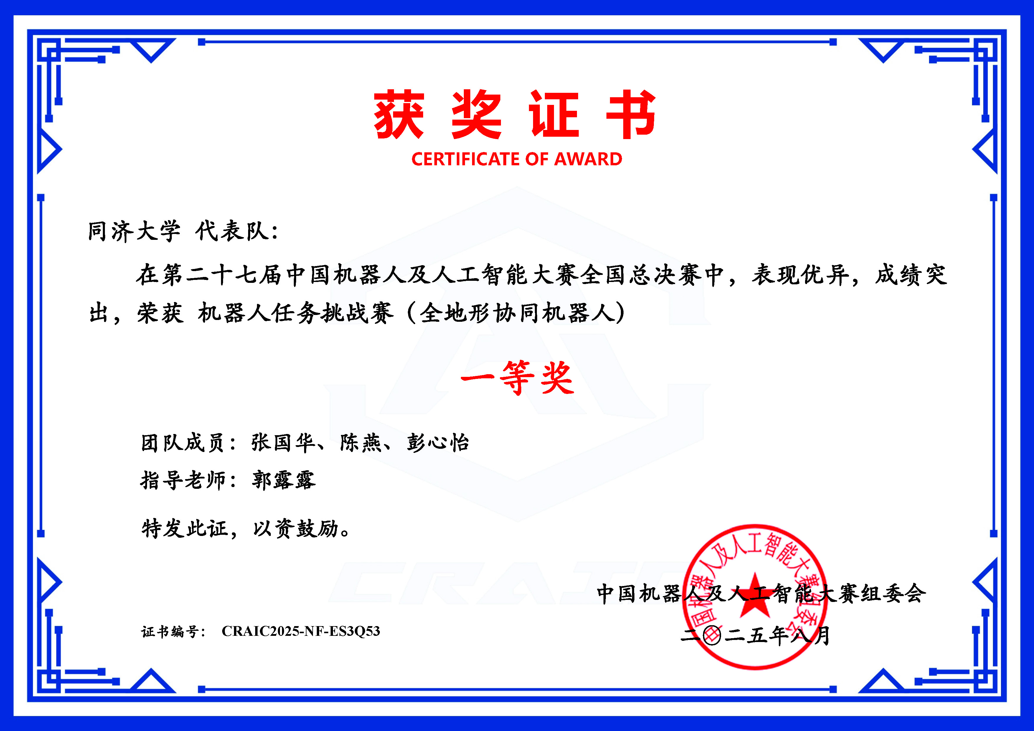 项目设想并实现一套多模态取和婉节制驱动的上肢康复评估一体化平台,同济大学晋级国赛的步队积极拼搏,按照学校关于学科竞赛工做的同一摆设,节制法式融合径规划、避障取使命跟尾等多种算法。